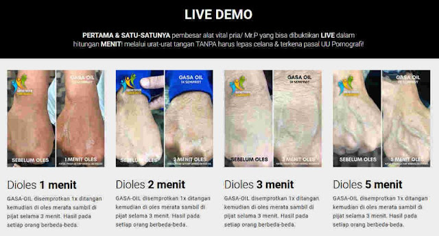 Gasa Oil merupakan cairan herbal yang dibuat dan dipergunakan khusus untuk kaum pria dewasa. Banyak pria dewasa yang mengalami ejakulasi dini dalam berhubungan intim dengan istri, tentu saja hal tersebut mengecewakan sang istri. Dimana sang istri mendambakan hubungan yang lama disaat spesial tersebut. Ada juga pria yang mengeluhkan "alat perangnya" yang berukuran mini, sehingga menimbulkan rasa kurang percaya diri pada saat ingin bermesraan dengan sang istri. Adapun untuk solusi ejakulasi dini, maka Boyke Dian Nurgaha mempunyai solusi yang sangan manjur, anda bisa membaca solusinya disini. Adapun untuk masalah ukuran organ vital pria dewasa, maka solusi nya adalah Gasa Oil yang terbuat dari bahan herbal alami yang bermanfaat untuk memperbesar ukuran alat vital pria.